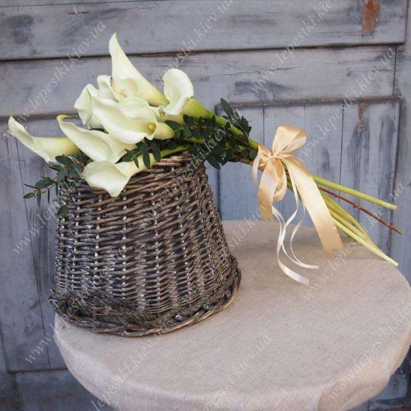 Кали асоціюються з чистотою, ніжністю та вишуканістю. Вони чудово доповнять будь-яке свято чи стануть прекрасним подарунком без приводу. А свіжа зелень у композиції додає їй ще більше природної легкості та глибини.